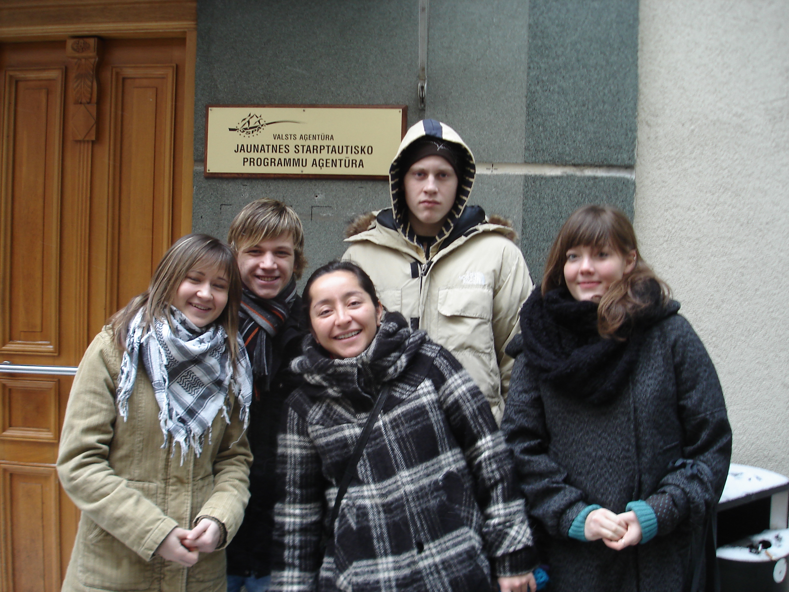 Sarah Flemming _first from the right_ in front of the National Agency which is responsible for all volunteers in Latvia